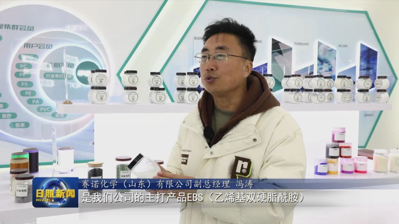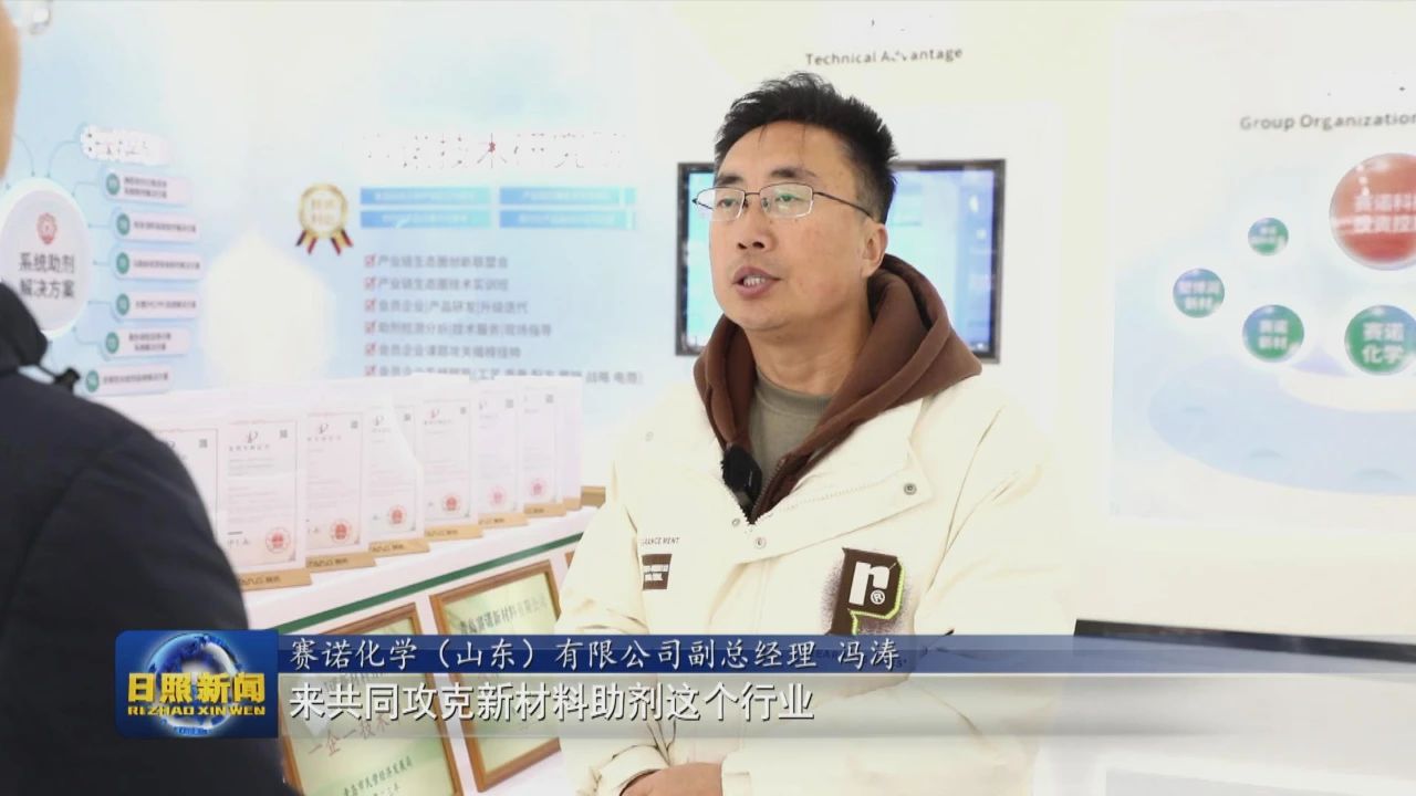 赛诺化学(山东)有限公司副总经理 冯涛:我们搭建这么个平台,来共同攻克新材料助剂这个行业,为上下游客户解决难题。同时我们也不断地自练内功,提升新材料市场的应用领域,不断对标国际,替代其它进口产品。