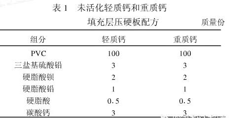 将未活化的轻质钙和未活化的重质钙填充层压硬板作对比试验,配方见表1。