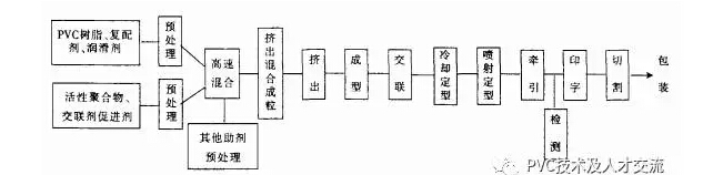 各组分预处理结果的好坏,直接影响交联反应的程度,及耐热改性 PVC管材的各项性能。因而各组分的预处理工艺成为产品是否达到使用要求的关键技术。耐热改性PVC管材的生产工艺与普通管材的生产基本类似,所不同的管坯加工前,工艺温度不宜控制太高,这样可以避免改性聚合物在未成型前产生化学交联,从而减少挤出机的负荷。使出料平稳,确保管材的外观质量及生产出综合性能优异的管材产品。